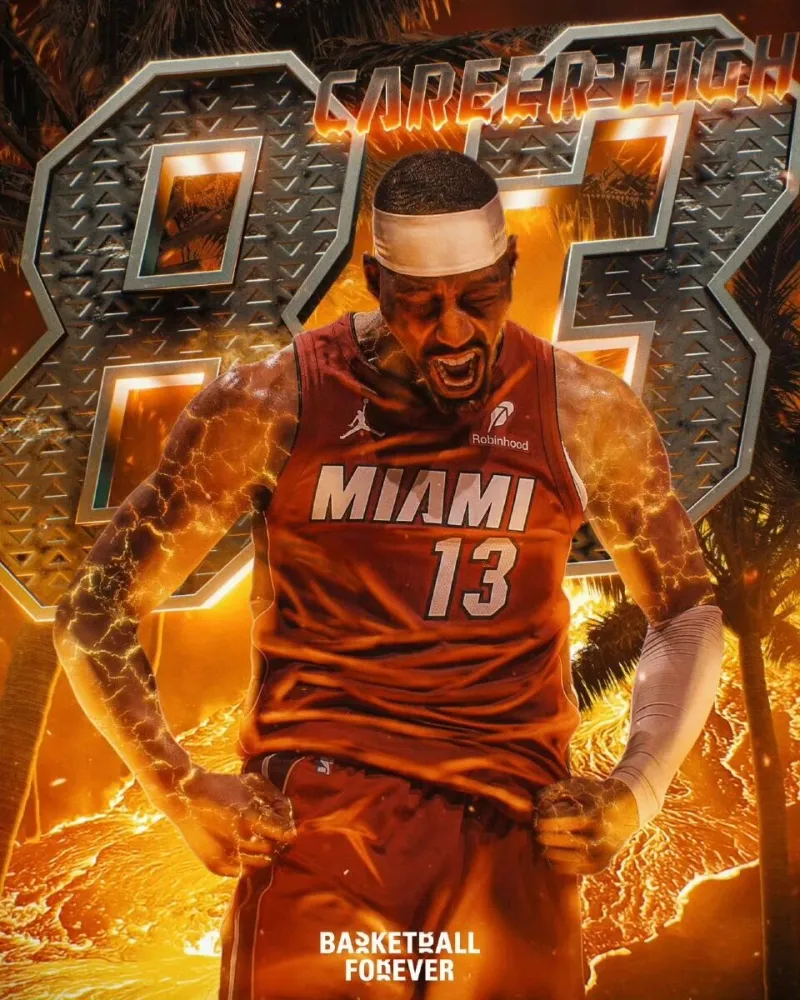 当第三节比赛结束时,阿德巴约的个人得分已经来到了62分,他超越了詹姆斯对阵山猫时创下的个人纪录,独享了队史单场得分的榜单